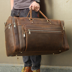 防水布配头层牛皮大容量旅行包真皮单肩手提短途出差行李袋大女包