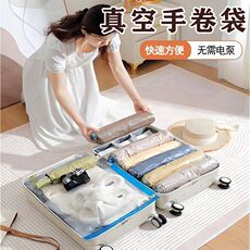 旅行真空压缩袋手卷免抽气行李箱专用出差羽绒服衣物收纳加厚便携