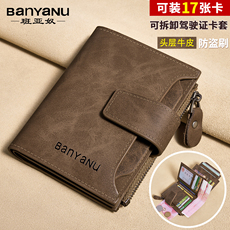 班亚奴钱包男短款真皮男士多卡位皮夹牛皮拉链零钱位独立卡包钱夹