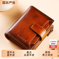 钱包男短款真皮头层植鞣牛皮复古钱夹手工复古多功能竖款软皮钱包