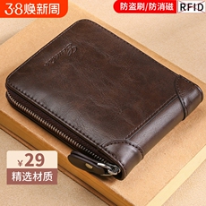 真皮头层牛皮皱褶零钱包男拉链卡包女生短款植鞣驾驶证硬币包皮夹