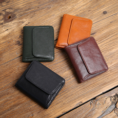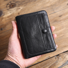 真皮头层牛皮皱褶复古小钱包扣式零钱包硬币包多卡位男式小卡夹潮