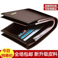 新款钱包男款真皮短款防盗刷牛皮钱夹驾驶证一体卡包男士拉链皮夹