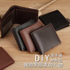 手工男士薄款钱包 牛皮超薄零钱包简约 迷你短款皮夹横款小钱包