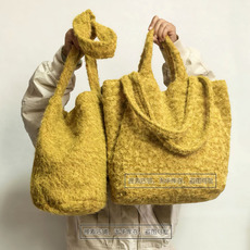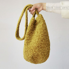 (厚实卷卷绒--腔调芥末黄)文艺甜美毛绒单肩包水桶斜挎毛呢包包