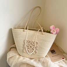 CKKUI 简约小清新编织包包2026春季镂空草编菜篮子通勤手提单肩包