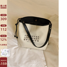 小白兔几 帆布单肩包女大容量简约刺绣背心包学生上课书包帆布袋
