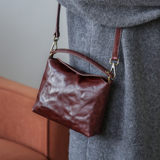 漫色复古植鞣头层牛皮小方包女真皮手提单肩斜挎包手机包小包包