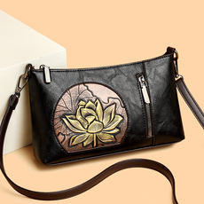 中国风真皮女包时尚印花斜挎包中年妈妈软皮大容量洋气女士单肩包