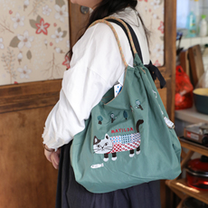 【小优家包包】HOYOZI 森林繁花 双面缎帆布托特单肩斜挎包包夏天