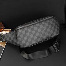 2025新款时尚男包简约格纹小胸包百搭街头小腰包潮男骑行后背挎包