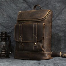 男士复古疯马皮真皮双肩包休闲背包牛皮书包旅行袋学院韩版潮男包