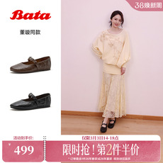 董璇同款Bata羊皮书弦乐扣玛丽珍鞋2026春商场浅口单鞋1821DAQ6
