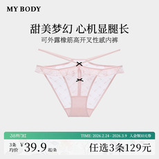 3件129|商场同款MYBODY新款甜美高开叉性感可外露绑带蕾丝内裤女