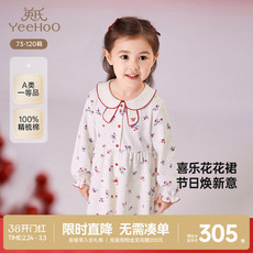 【商场同款】英氏女童裙子春秋长袖纯棉宝宝连衣裙春季拜年裙