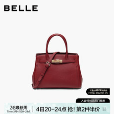 百丽女包新款商场同款通勤手提包真皮铂金包新年红色婚包X7348AX6