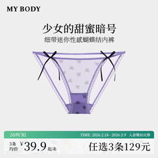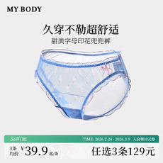 3件129|商场同款MYBODY甜美蝴蝶结蕾丝内裤浪漫印花无痕三角裤女
