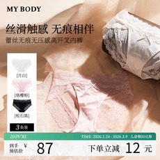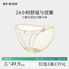 3件129|商场同款MYBODY新款内裤女抗菌全棉底裆中低腰蕾丝三角裤