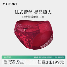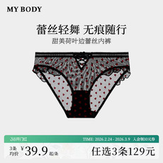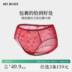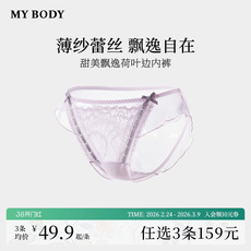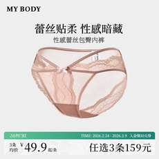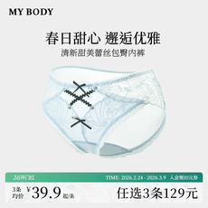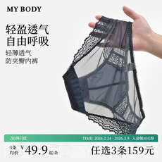 3件159|商场同款MYBODY新款内裤法式轻薄蕾丝纯棉底档中腰平角裤