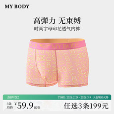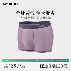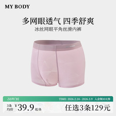 3件129|商场同款MYBODY新款冰丝网眼四角中腰平角裤丝滑男士内裤