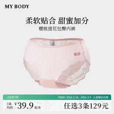 3件129|商场同款MYBODY新款女内裤莫代尔樱桃提花花边蕾丝三角裤
