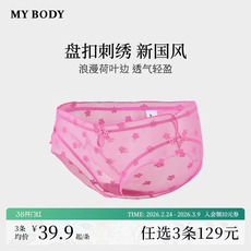 3件129|商场同款MYBODY内裤女纯棉裆国风盘扣性感网纱提花三角裤