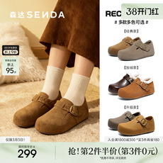 森达灰色勃肯鞋女鞋冬新款商场同款真皮厚底内增高保暖毛毛鞋棉鞋