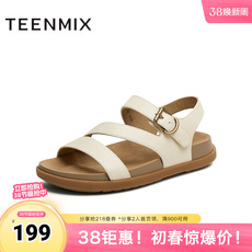 天美意新款商场同款平底百搭简约女一字带凉鞋CEY16BL5