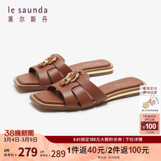 莱尔斯丹奥莱清仓特卖商场同款时尚方头饰扣低跟拖鞋女鞋4M01401