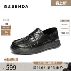 森达休闲皮鞋男2026春秋新商场同款抓纹一脚蹬厚底单皮鞋XB003CM6