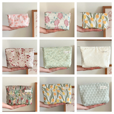 ins奶油刺绣花朵高级感化妆包大容量水乳收纳袋女化妆便携手拿包