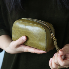 sainkho山叩真皮迷你化妆包植鞣牛皮手拿包便携皮质收纳包复古简