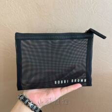 芭比波朗黑色拉链网纱袋 通勤旅行便携笔袋洗漱包 手拿收纳化妆包