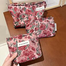 韩国复古法式提花化妆包女大容量便携洗漱包整理收纳手拿袋