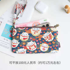 加厚加里卡通印花帆布长款钱包拉链手机包手拿包口红小物件收纳包