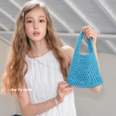 feytiy 定染蓝 时髦复古镂空编织包包女手腕包手提包手拎包春夏季