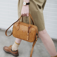 葱木日杂学院小众复古通勤手提真皮斜挎方包女大容量双拉链单肩包