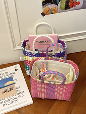 CNLEEWEI26春夏新款百搭撞色镂空编织网兜手提包单肩斜挎包