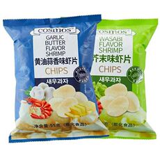 新品推荐Cosmos虾片系列55g袋装蒜香味芥末味夜宵追剧膨化零食
