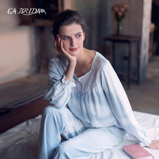 CA BRIDA【悠然】新品推荐法式复古重工双色蕾丝棉绒睡衣套装N814