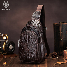 2026新款头层牛皮男士鳄鱼纹单肩斜挎包真皮胸包潮牌休闲旅游背包