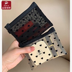 日本优品植绒爱心网纱小收纳包2025随身便携女新款旅行化妆包迷你