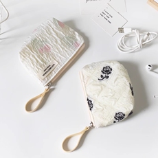 小白兔几 碎花绗缝夹棉便携收纳包可爱软零钱包口红收纳包化妆包