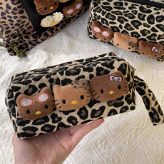 三丽鸥HelloKitty豹纹绗缝手提化妆包少女风便携旅行收纳包可爱萌