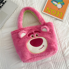 毛毛绒包包女新款双面包少女心软妹化妆手提包草莓熊三眼怪卡通包