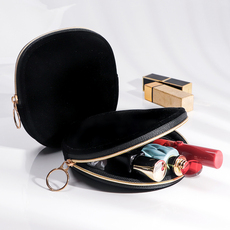 韩国便携贝壳化妆包漆皮黑色女小号收纳简约多功能大容量防水旅行