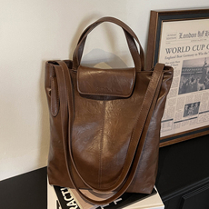 秋冬复古大容量上班通勤包女式2026新款高级感百搭纯色单肩托特包