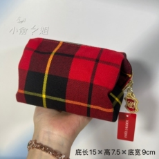 雅诗兰黛英伦风红色格子厚实棉布手拿包化妆包