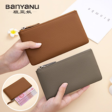 真软皮长款钱包女头层皮复古拉链手拿零钱简约超薄便携卡包收纳包
