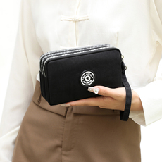 简约布艺小包双层拉链零钱包迷你手拿小方包钥匙卡包卫生棉收纳包